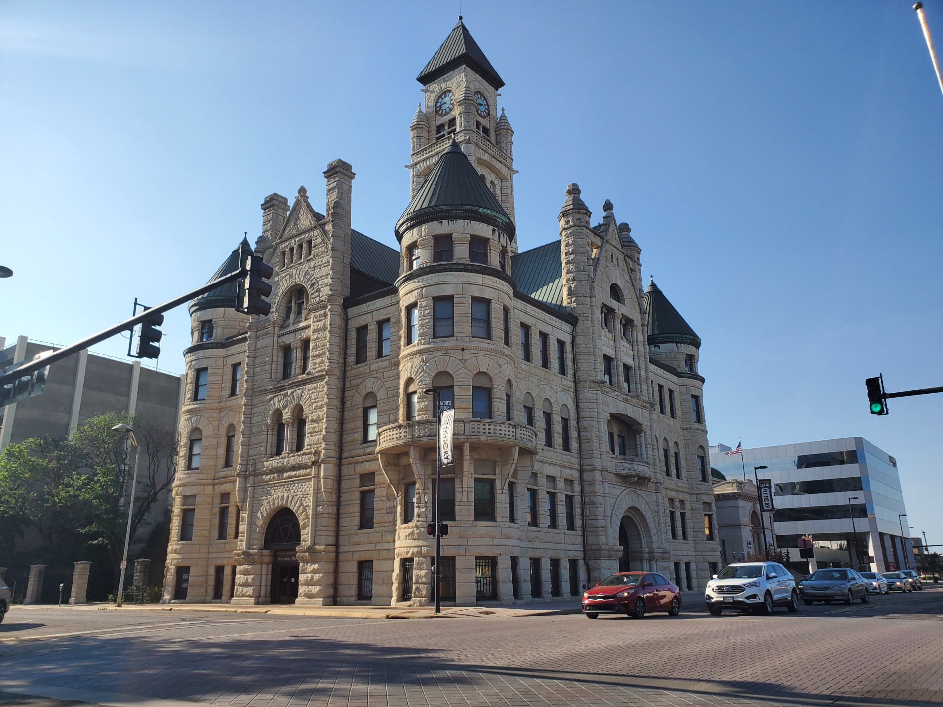 Wichita was a nice little town with a river running through its middle. On our way out this morning, we saw the following lovely old building that now houses the Kansas Historical Society: