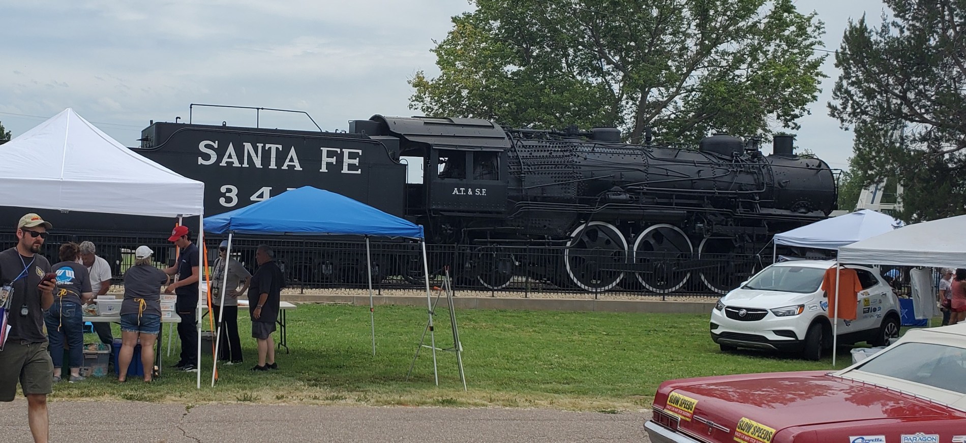 Leg 3 we scored a 6, and then Leg 4… ACE! Zero seconds lost! Now we’re talking! We took a break for lunch in Great Bend, Kansas, in a park with a pool, a zoo, and a glorious old Santa Fe Railroad steam locomotive.