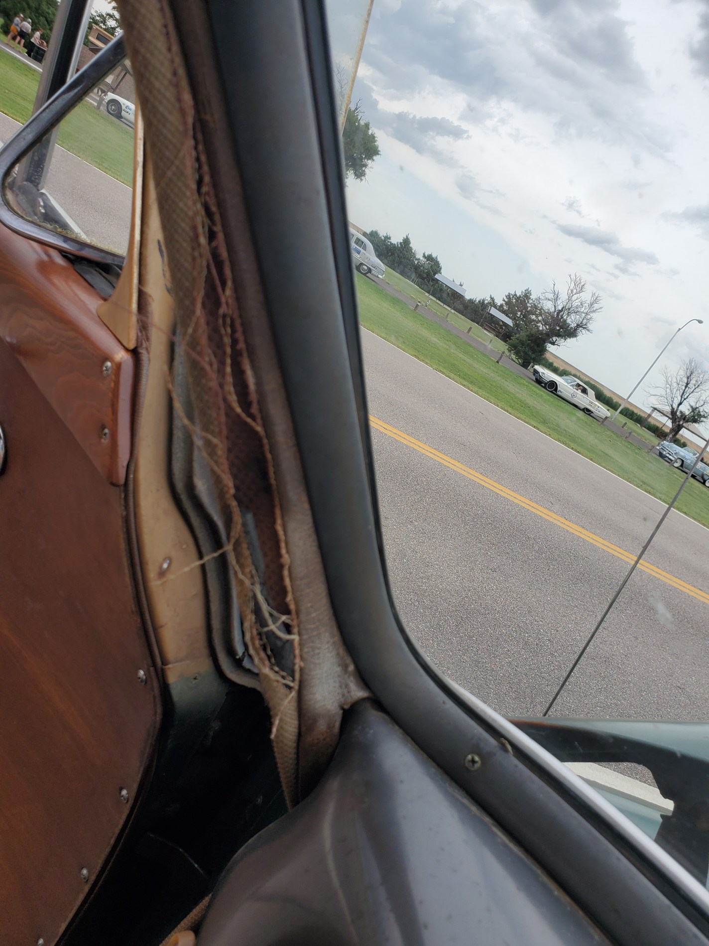 More window weather-stripping is falling apart on The Hippo, this time on my side of the car. With the windows down for 7 hours of driving a day, the wind velocity has managed to accelerate the decay of the dry-rotted material. I will have to freshen all that up when she gets back to Baltimore.